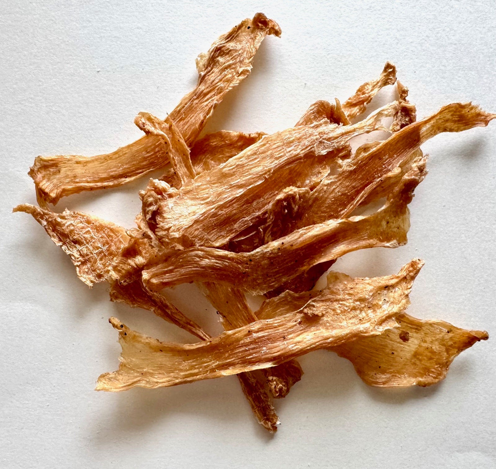 薄くスライスしたチップスタイルで仕上げた『とりむねちっぷ』です。 とりむねちっぷは、北海道中札内産鶏ムネ肉を、梅肉エキス、昆布、シイタケ、マイタケ、キクラゲの粉末を溶かした特製のタレに漬け込み、低温でじっくり乾燥させました。 素材の持つ旨みと香りを引き出し、シンプルながらも奥行きのある味わいに仕上げています。 梅肉エキスに含まれる「ムメフラール」という成分が注目され、健康を支える可能性があるとして話題になりました。梅は古くから日本の暮らしと深く結びつき、保存食としてだけでなく、体調管理や食養生の知恵として受け継がれてきた食材です。 その梅の恵みを凝縮した梅肉エキスは、塩分を含まず梅本来の成分だけを効率よく取り入れられるのが大きな特長です。日々の食事に無理なく取り入れられ、身体にやさしく寄り添ってくれる食品だと考えています。 愛犬・愛猫の毎日の食事やおやつの時間が、健やかで、安心できるものになるように。 そんな想いを込めて丁寧に作った、当店オリジナルのチキンジャーキーです。 ■内容量 40g ■原材料 北海道中札内鶏ムネ肉、梅肉エキス、昆布、シイタケ、マイタケ、キクラゲ粉末 ■カロリー 153kcal/40g ■主要成分 粗タンパク質 35g、脂質 2.5g、炭水化物 4〜5g、灰分 1.8g ■賞味期限 1ヶ月(開封後は冷暗所で保存し、なるべく早くお召し上がりください) ■対象 犬・猫 ■発送・注文に関する情報や注意事項 ・ご注文いただいてから5日ほどで発送いたします。配送の都合上、地域によってはお届けに日数がかかる場合がありますので、予めご了承ください。 ご質問やお問い合わせに関しては、ショップのお問い合わせページよりお気軽にご連絡ください。