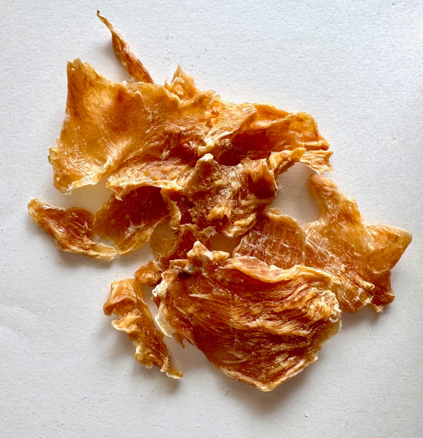 品質低下の原因となる薬剤処理や冷凍処理を行っていない、希少なチルド状態の鶏ムネ肉を低温で丁寧に乾燥させていますので、旨味を逃さず、風味豊かな一品に仕上がっています。